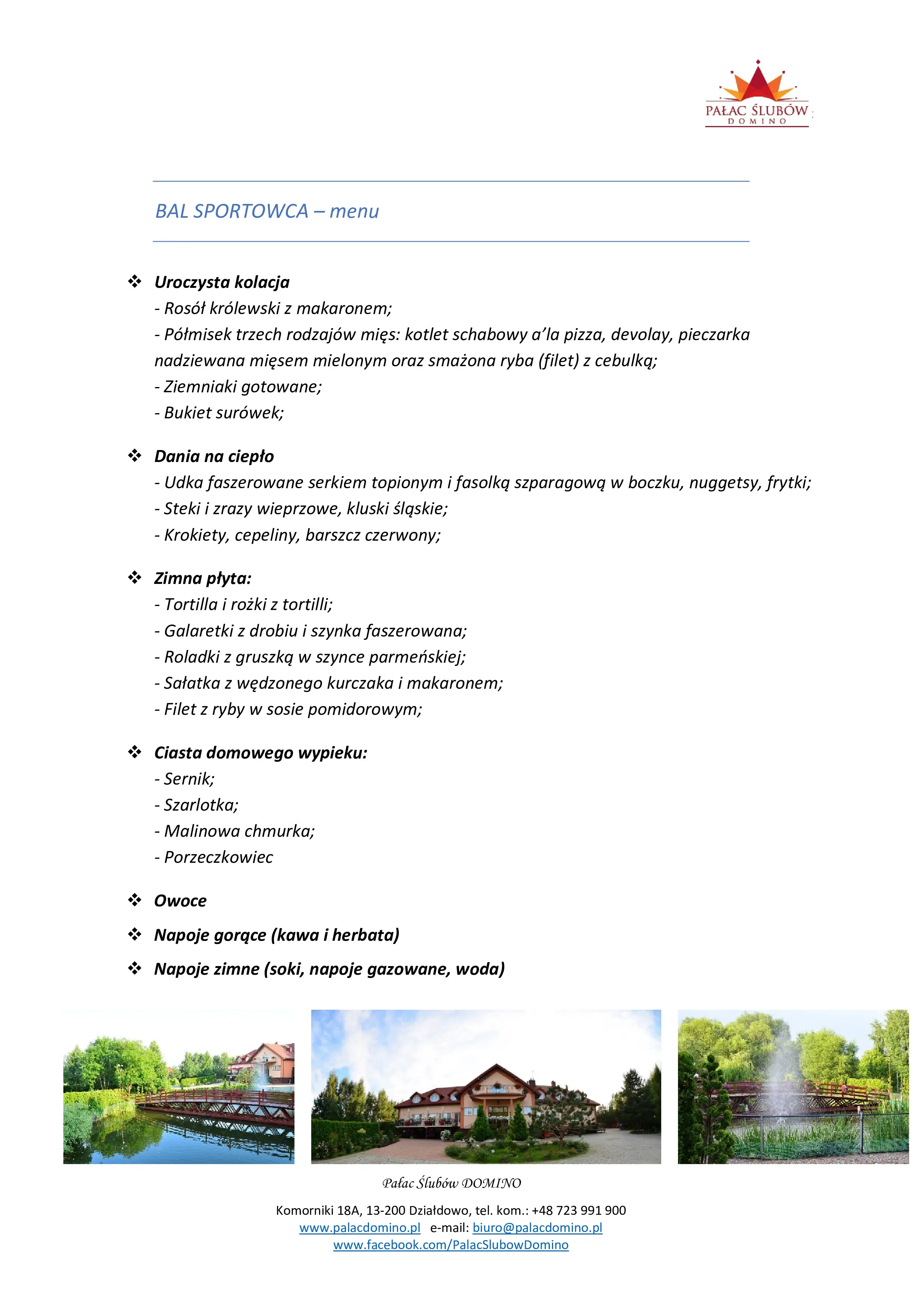 Informujemy NASZYCH WSPANIAŁYCH UCZESTNIKÓW, że "BAL MISTRZÓW SPORTU" rozpocznie się o godzinie 19.00 w Pałacu Ślubów DOMINO - Komorniki 18